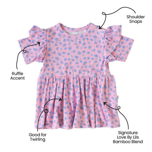 Lillian Leopard Bamboo Ruffle Spin Dress