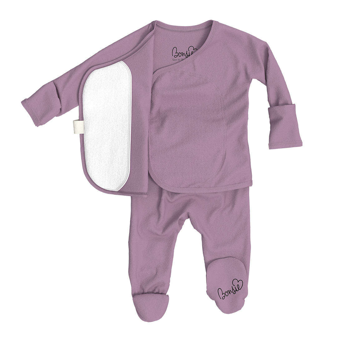 Meet the Bonsie Footie—our bestselling, skin-to-skin superstar designed to make those first days (and nights) easier, cozier, and full of connection. Crafted from our signature ultra-soft, breathable fabric, this one-piece wonder features a wrap-front design that gives you instant access for skin-to-skin bonding—without taking the whole outfit off.